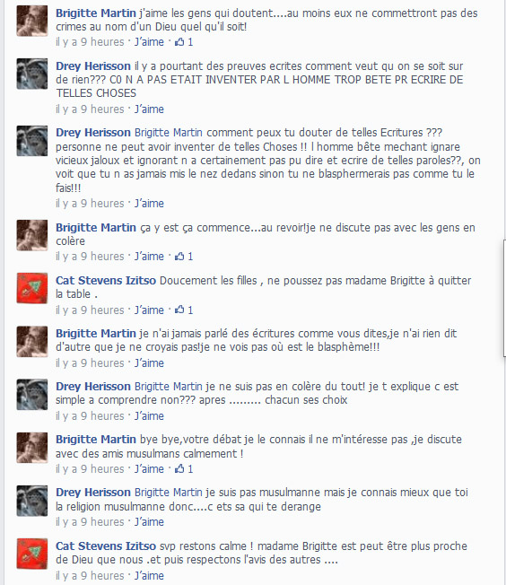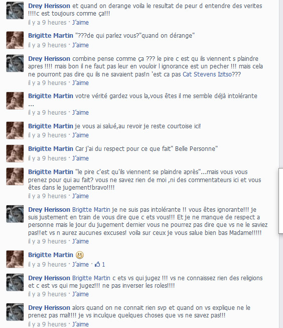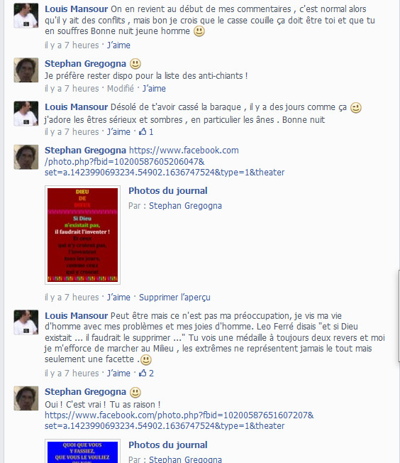 Ben ma foi, je ne suis pas en contradiction avec toi, dit comme ça. En fait tu es un vrai ferment chrétien au sein de la croyance islamique. Autrement dit, il y a toujours un moyen de se rencontrer en paix et nous le savons particulièrement tous les deux.
