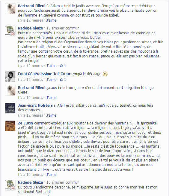 « Peu importe l’habit, je l’ai déjà écris ici, athée, musulman ou tout ce qu’il y a entre les deux, c’est l’âme qui est importante. Une âme bonne fera indifféremment un bon athée ou un bon musulman, tandis qu’une âme mauvaise… »